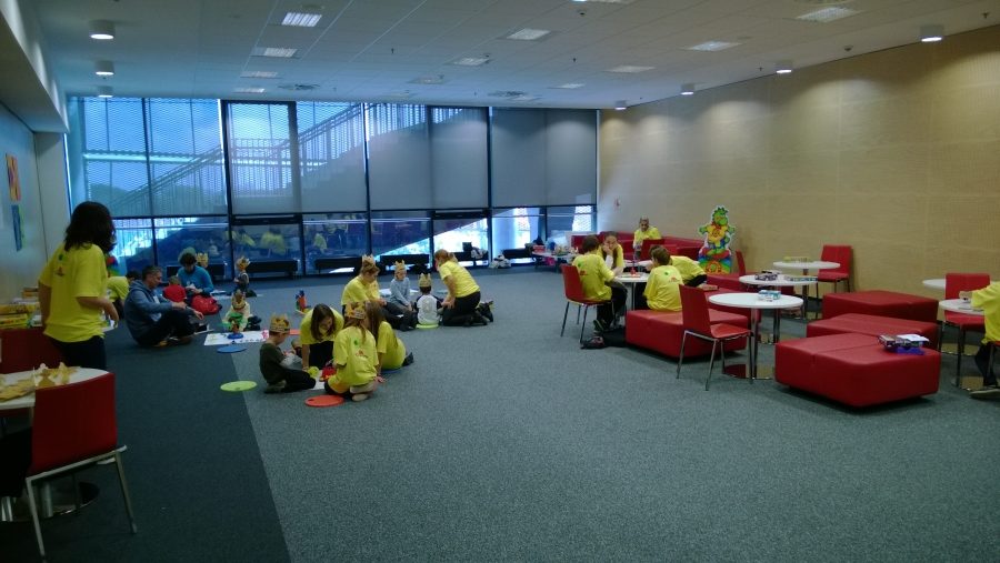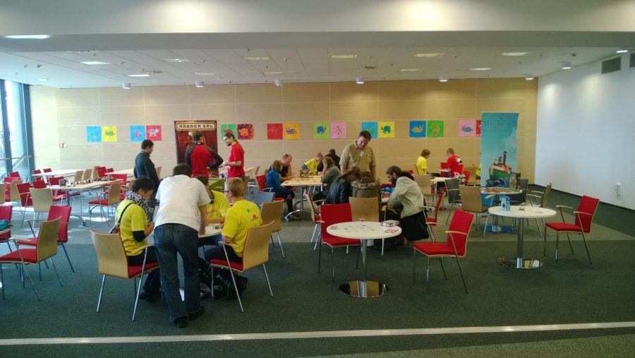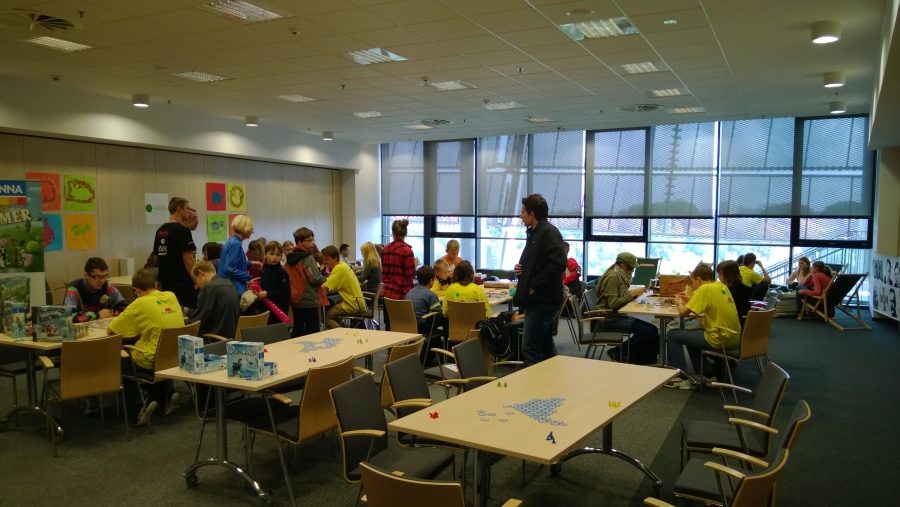 Impreza jest zdecydowanie nastawiona na rodziny i dzieci – stąd w większości sal można było pograć w tytuły wydane przez Egmont i Grannę . Na długim korytarzu stoiska miały swoje sklepy i wydawcy, a w dwóch sporych salach były wypożyczalnie. Zdecydowanie na pochwałę zasługują organizatorzy i mnóstwo wolontariuszy – wszędzie ich było pełno. Jako niewielki minus muszę wspomnieć o limicie graczy – jednocześnie na konwencie mogło znajdować się tylko 1500 osób. W momencie jak wychodziłem niestety kolejka chętnych na wejście składała się z kilkudziesięciu osób. Cieszę się, że takie imprezy się odbywają również w Warszawie – jak widać jest na nie zapotrzebowanie.
