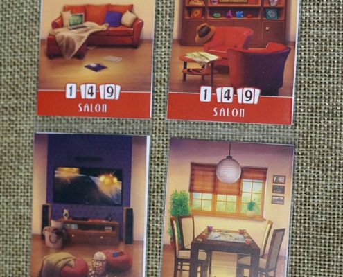 Bo wykończenie Domku to nie jest taka prosta sprawa. Przede wszystkim musimy zacząć od parteru, a tam mamy tylko trzy wolne miejsca na pomieszczenia. Możemy więc zacząć budować tam pokoje np sypialnię, kuchnię czy salon. Ale mały salon na nikim nie zrobi wrażenia i nie wzbudzi w naszych sąsiadach ani krztyny zazdrości, przez co za jednokarciany salon dostaniemy tylko jeden punkt. Jeżeli w przyszłej rundzie dostawimy obok kolejną kartę, dostaniemy tych punktów już 4, a za salon na pół piętra składający się z trzech kart – aż 9. Szkopuł w tym, że w kolejnej rundzie może nie być dostępnych pasujących nam kart, albo niedobrzy i zazdrośni sąsiedzi-gracze podbiorą nam je z toru, a co rundę coś dostawić musimy. Oczywiście raz położona karta nie może być przesunięta, chyba że w czasie gry zatrudnimy (weźmiemy z toru) pana Majstra, który pozwoli zamienić dwa pomieszczenia miejscami w już ukończonym domu. Całe szczęście jak tylko zbudujemy pierwsze pomieszczenie na parterze, możemy zbudować nad nim kolejne, a po zbudowaniu garażu będziemy mieli dostęp do całego parteru. W czasie gry może się jednak okazać, że nie zdążymy zbudować garażu, a będziemy mieli już zajęte wszystkie inne dostępne miejsca, wówczas dowolną kartę pomieszczenia z toru będziemy musieli zbudować jako pusty pokój (położony rewersem do góry) za który oczywiście nie zdobędziemy żadnych punktów.