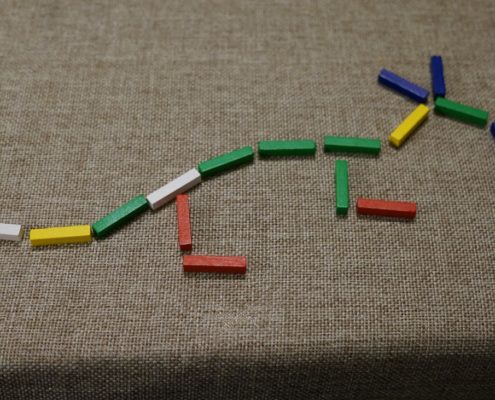 Wielka Wystawa Dinozaurów składa się z trzech rund, które z kolei składają się na trzy fazy. Pierwsza faza to faza wykopalisk, w których będziemy poruszać naszym paleontologiem po planszy i wykopywać kości dinozaurów, reprezentowane przez kolorowe, drewniane patyczki. Następnie w fazie rekonstrukcji będziemy starali się stworzyć z tego co zebraliśmy, coś co przynajmniej trochę przypomina szkielet dinozaura. Różne kolory drewienek reprezentują różnego rodzaju kości np. zielone to kości kregosłupa i żebra, żóte to kości szyi i ogona, czerwone – kończyny, a niebieskie – kości specjalne jak różnego rodzaju rogi, wypustki i inne dziwactwa, które być może istniały na dinozaurach, a być może nie. Mamy jeszcze kości białe, które w sumie nie przypominiają niczego konkretnego więc możemy je wstawić gdziekolwiek byleby nie wybijały się zbytnio z tłumu i nie przykuwały uwagi (możemy je położyć jako dowolną kość o ile styka się tylko z jednym kolorem innych kości). Być może już wyczuwacie, że to co tworzą gracze w czasie tej fazy nie będzie nawet przypominało tego co możecie zobaczyć w muzeach? A z drugiej strony – przecież nikt mi nie udowodni że tak nie wyglądały Dinozaury! Macie jakieś zdjęcia na dowód? Trzeba się tylko kierować pewnymi wytycznymi: przynajmniej jedno żebro, dwie kończyny, minimum po jednej kości w szyi i ogonie. To wystarczy żeby opublikować nasze znalezisko i wziąć udział w trzeciej fazie czyli Wystawie.